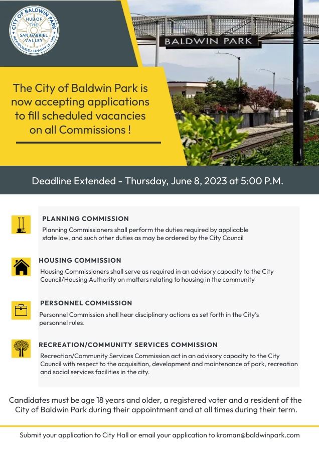 The Recreation and Community Services Commission of the city consists of seven members, five of who are designated and appointed to Commission Office Nos. 1 through 5 and serve a two-year term respectively.