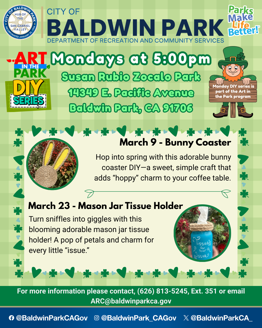 Este marzo, Art in the Park recibe la primavera con nuestra Serie DIY de los lunes—¡donde la creatividad florece y la diversión nunca se detiene!Proyectos prácticos que te harán saltar de alegría.